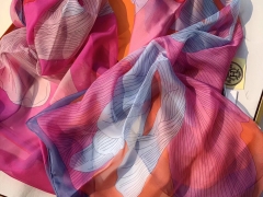H《绦带四色》 由四个色组成的方巾 140*140cm 100%雪纺真丝