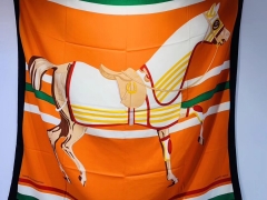 H 丝羊绒 《 骏马披挂 》橙色 – – 140*140 cm 真丝羊绒混纺