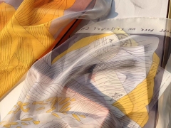 春季丝巾新品《佐阿夫团与龙》黄色 90x90cm 100% 蚕丝面料 高精度纺织