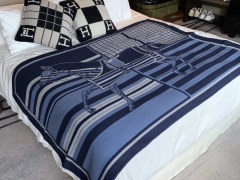 Hermes 《 新骏马披挂 》毛毯 140*180cm 90%羊毛10%羊绒 新款 独家放送 藏蓝色