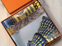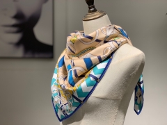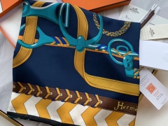 H 新款方巾 《马嚼锁环》 蓝色 90.90cm 100%斜纹真丝 全套包装
