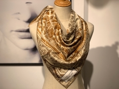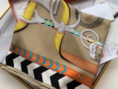 H 新款方巾 《马嚼锁环》 鸵色 90.90cm 100%斜纹真丝 全套包装