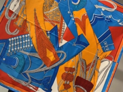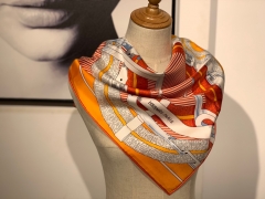 H 新款方巾 《马嚼锁环》 橙色 90.90cm 100%斜纹真丝 全套包装