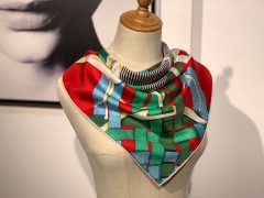 H 新款方巾 《马嚼锁环》 绿色 90.90cm 100%斜纹真丝 全套包装