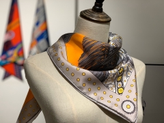 H 方巾《全副马具》太阳黄 90×90cm 100%斜纹桑蚕丝 姆米数足 套色一级