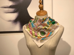 HMS 新款方巾 《波普式骏马披挂》彩色 90.90cm 100%斜纹真丝 全套包装