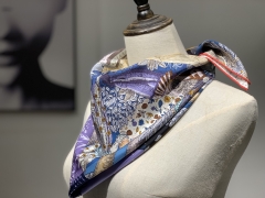 H 方巾《全副马具》紫色 90×90cm 100%斜纹桑蚕丝 姆米数足 套色一级