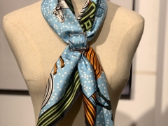 HMS 新款方巾 《波普式骏马披挂》蓝色 90.90cm 100%斜纹真丝 全套包装