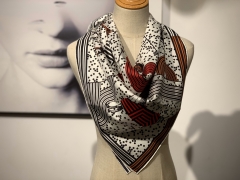 HMS 新款方巾 《波普式骏马披挂》白色 90.90cm 100%斜纹真丝 全套包装
