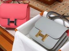爱马仕 HERMES 空姐包 Constanc 19/23cm 海鸥灰 桃粉色