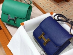 爱马仕 HERMES 空姐包 Constanc 19/23cm 竹子绿 电光蓝
