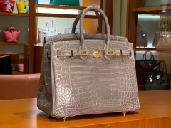 爱马仕 HERMES Birkin 25/30 高光 大象灰 鳄鱼皮