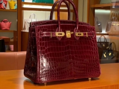 爱马仕 HERMES Birkin 25/30 高光 波尔多酒红 鳄鱼皮