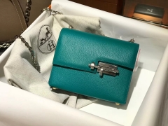 HERMES Verrou 18cm 山羊皮 孔雀绿