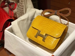 爱马仕 HERMES 空姐包 Constanc 19/23cm 琥珀黄 鳄鱼皮 配全套专柜原包装