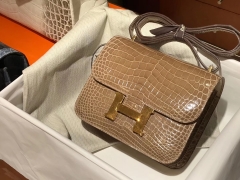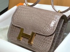 爱马仕 HERMES 空姐包 Constanc 19/23cm 大象灰 鳄鱼皮 配全套专柜原包装