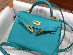 爱马仕 HERMES MiniKelly 2 Epsom 孔雀蓝 配原版正品全套包装 金银扣可定制