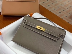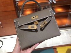 爱马仕 HERMES MiniKelly 2 Epsom 大象灰 配原版正品全套包装 金银扣可定制