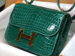 爱马仕 HERMES 空姐包 Constanc 19/23cm 祖母绿 鳄鱼皮 配全套专柜原包装