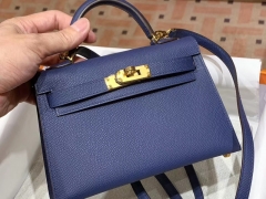 爱马仕 HERMES MiniKelly 2 Epsom 宝石蓝 配原版正品全套包装 金银扣可定制