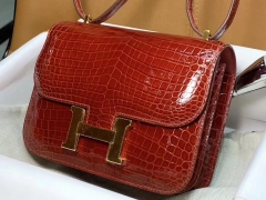 爱马仕 HERMES 空姐包 Constanc 19/23cm 法拉利红 鳄鱼皮 配全套专柜原包装