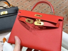 爱马仕 HERMES MiniKelly 2 Epsom 番茄红 配原版正品全套包装 金银扣可定制