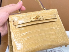 HERMES mini kelly二代 进口原厂鳄鱼皮 现货 琥珀黄