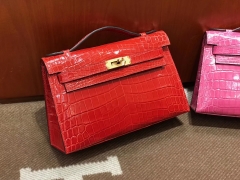 HERMES mini kelly二代 进口原厂鳄鱼皮 现货 法拉利红