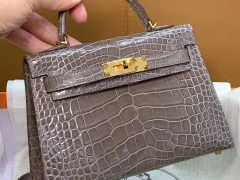 HERMES mini kelly二代 进口原厂鳄鱼皮 现货 大象灰