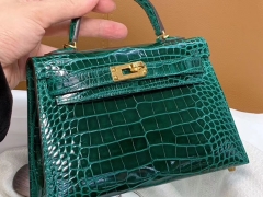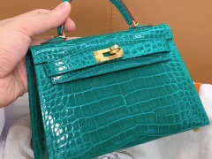 HERMES mini kelly二代 进口原厂鳄鱼皮 现货 翡翠绿