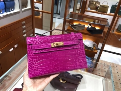 HERMES mini kelly一代 进口原厂鳄鱼皮 现货 天方夜谭紫