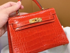 HERMES mini kelly一代 进口原厂鳄鱼皮 现货 法拉利红