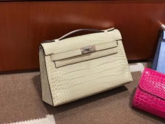 HERMES mini kelly二代 进口原厂鳄鱼皮 现货 奶昔白