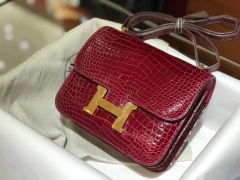 HERMES Constance 19CM 24CM 鳄鱼皮 现货 波尔多酒红