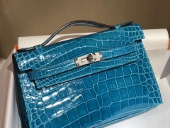 HERMES mini kelly一代 进口原厂鳄鱼皮 现货 水妖蓝