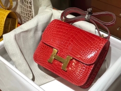 HERMES Constance 19CM 24CM 鳄鱼皮 现货 国旗红