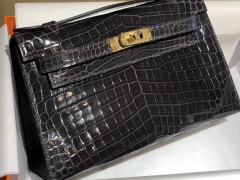 HERMES mini kelly一代 进口原厂鳄鱼皮 现货 经典黑