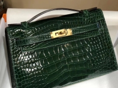 HERMES mini kelly二代 进口原厂鳄鱼皮 现货 祖母绿