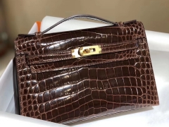 HERMES mini kelly一代 进口原厂鳄鱼皮 现货 深棕色