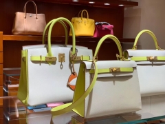 HERMES 爱马仕 凯莉包 Kelly 25CM 28CM Epsom 奶昔白配小鸡黄 拉丝金