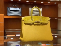 HERMES birkin 25cm 9D琥珀黄拼鳄鱼 现货