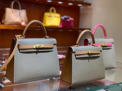 HERMES 爱马仕 凯莉包 Kelly 25CM 28CM Epsom 风衣灰配海鸥灰 拉丝金