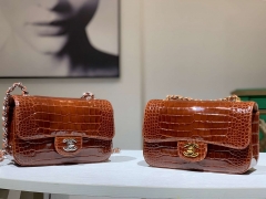 Alligator 美洲鳄 CHANEL香奈儿 CF 金银扣定做 20cm 焦糖色