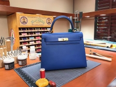 Kelly 28CM 现货系列 配全套专柜原版包装 CC73 宝石蓝 Blue Saphir Epsom皮 爱马仕HERMES