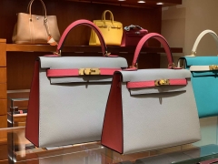 HERMES 爱马仕 凯莉包 Kelly 25CM 28CM Epsom 海鸥灰拼蜜桃粉 拉丝金
