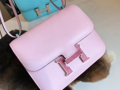 HERMES 爱马仕 空姐包 Constance 18cm 24cm 奶昔粉 蜥蜴扣