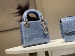 Alligator 美洲鳄 迪奥DIOR戴妃包 大象灰 鸭子蓝 珍珠灰 接受定制 金银扣