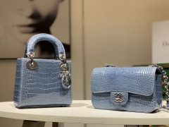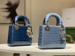 Alligator 美洲鳄 DIOR迪奥戴妃包 金银扣定做 雾霾蓝
