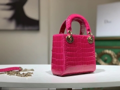 Alligator 美洲鳄 迪奥DIOR戴妃包 玫红色 接受定制 金银扣