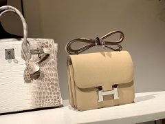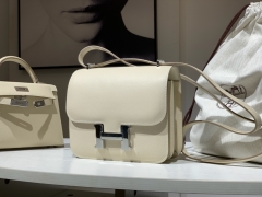 HERMES 爱马仕 空姐包 Constance 18cm 24cm 奶昔白